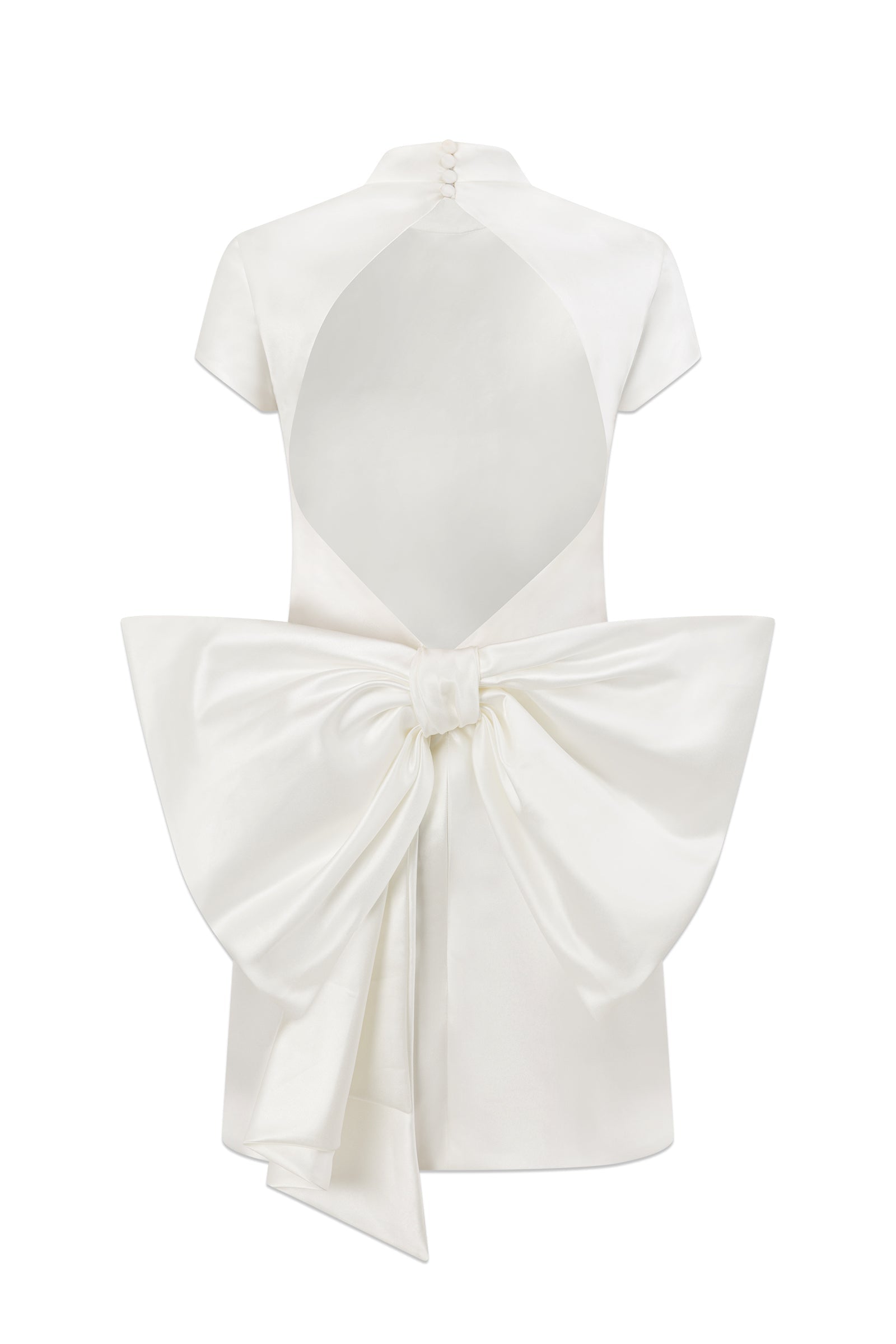 • Open back with draped bow detail