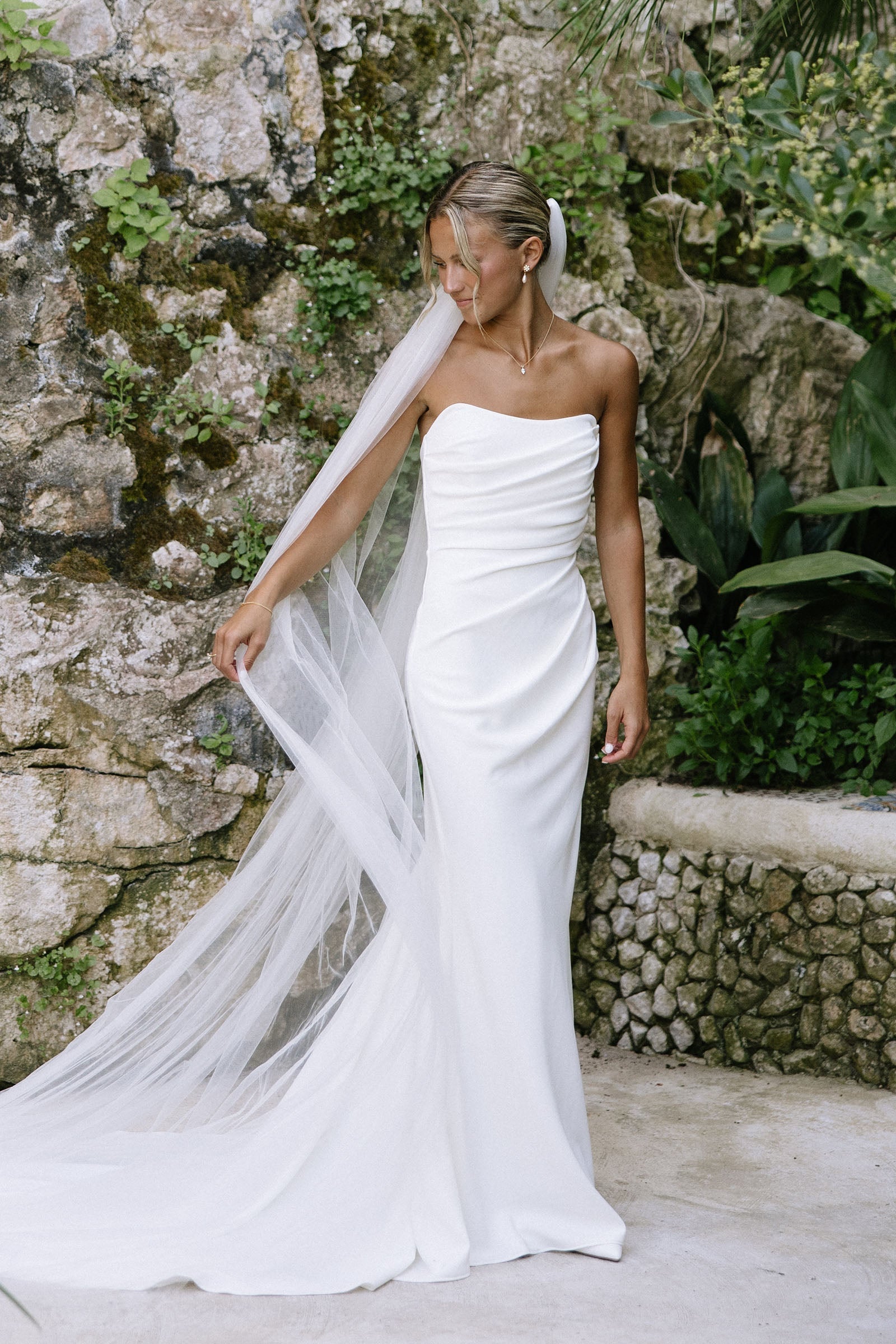 La robe de mariée bustier en crêpe parfaite existe . Phoebe se définit par sa simplicité et crée la plus belle silhouette avec des sous-vêtements gainants intégrés et des baleines flexibles, conçues pour flatter la taille et créer un look de mariée intemporel.