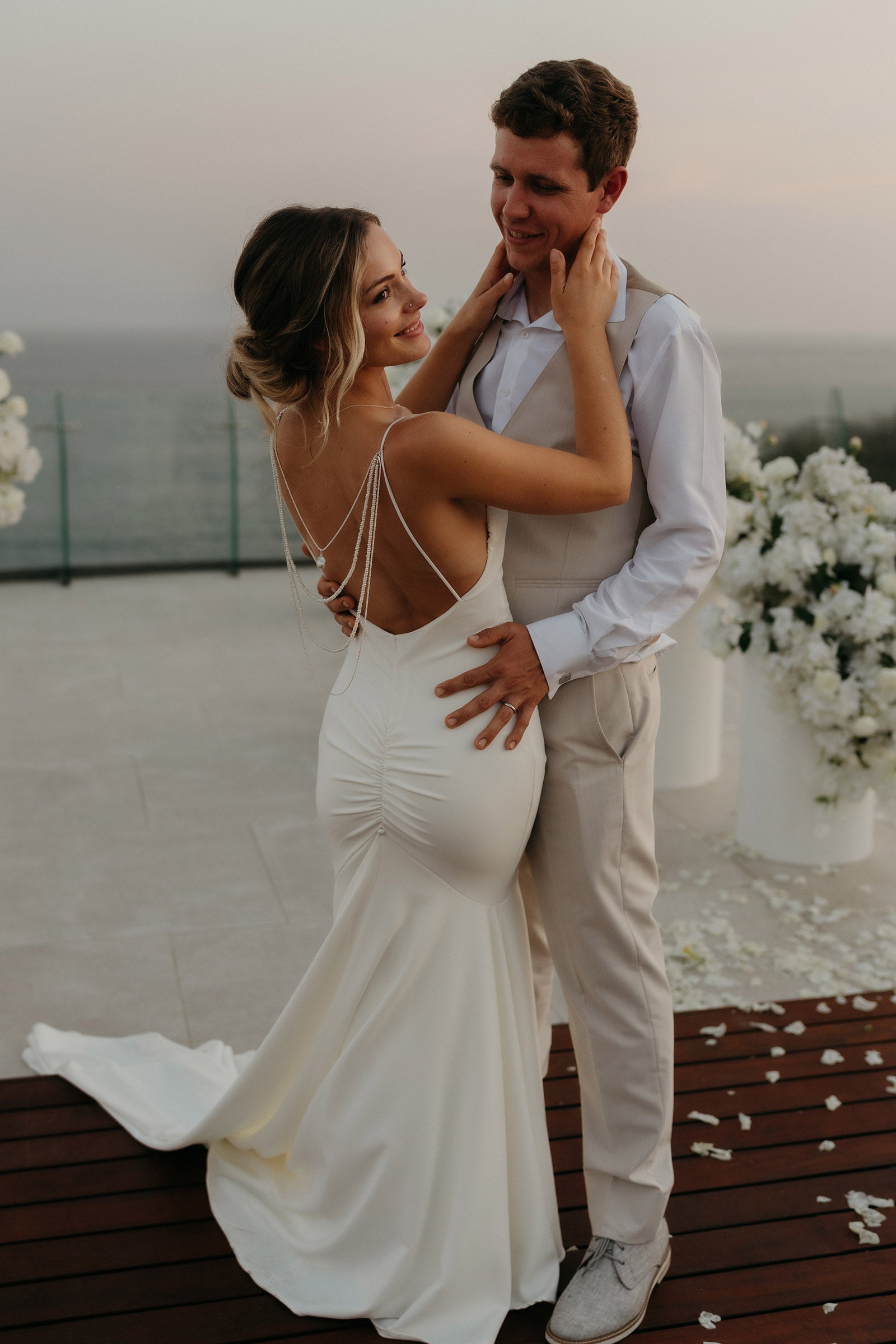 Clo-crepe speaks a softer language. The crepe wedding dress features centre-back ruching paired with a mermaid silhouette that defines pared-back drama. Clo Crepe is pure luxury with decadent stretch crepe for the modern bride.
