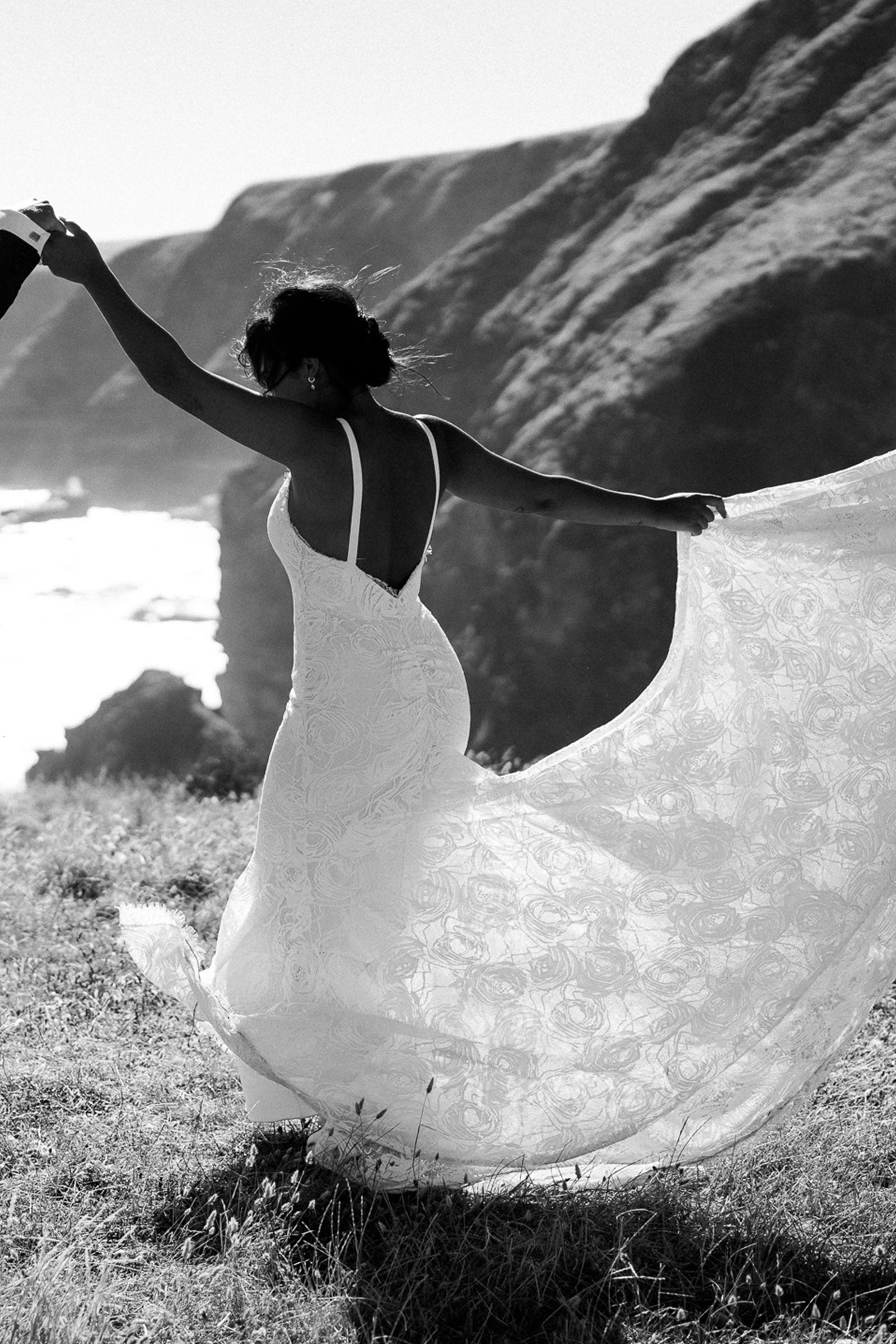 • I loved feeling free and flowy. I didn’t want to feel constricted or heavy in a wedding gown and my dress made me feel so comfortable. The delicate detail in the lace of the gown was beautiful and I love that it was made to fit my body and I didn’t have to stress about gaining or losing weight before my wedding and needing last minute alterations.