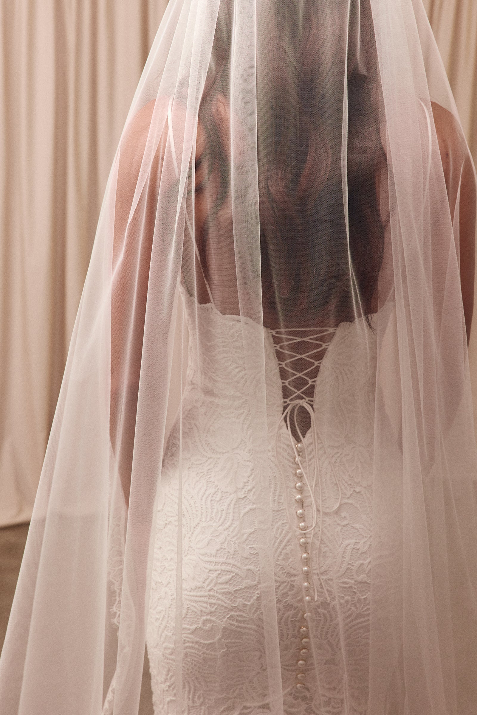 • 80cm train with bustle & finger loop