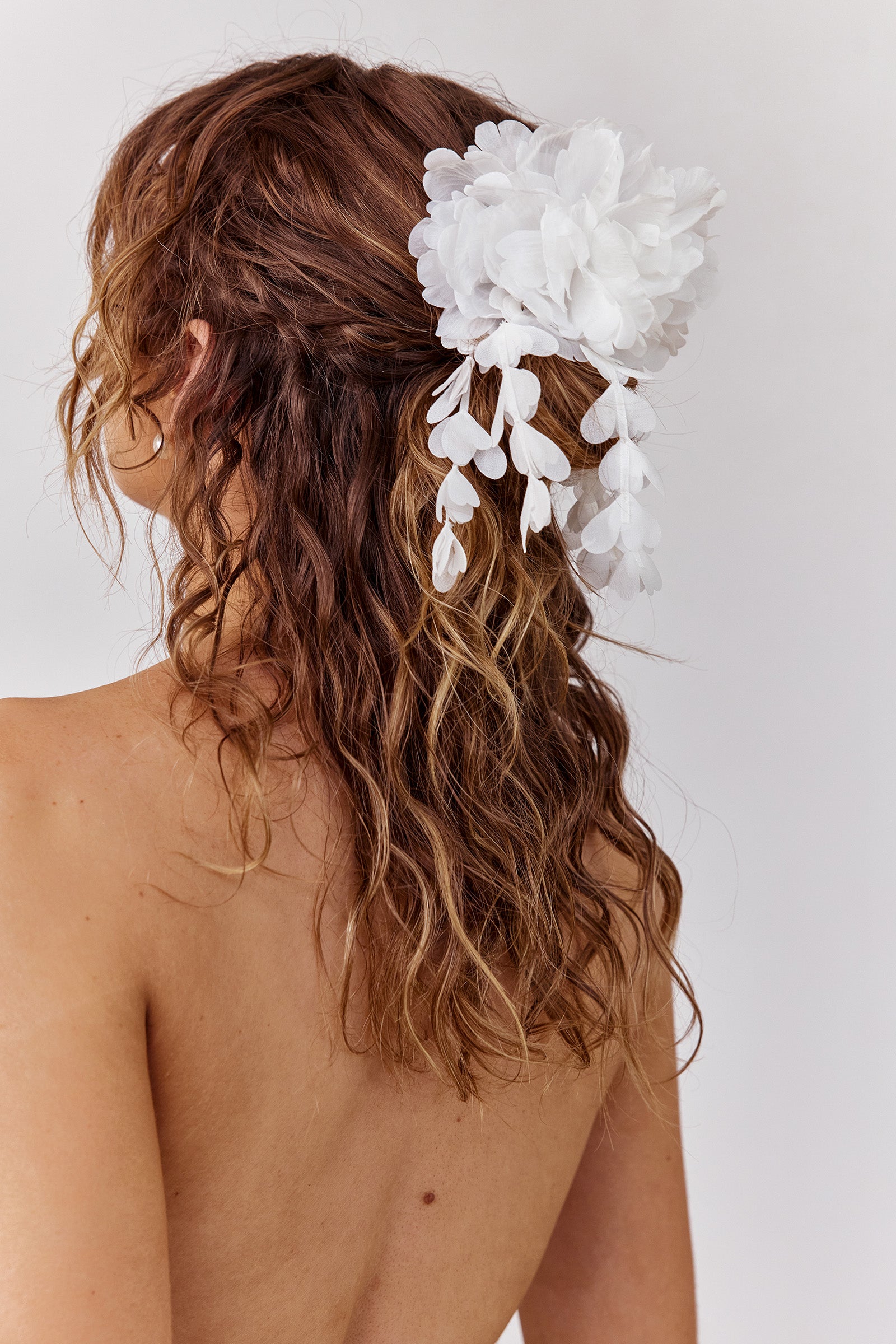 Effortless styling, the Grace way. Inspired by our iconic flower-in-hair moments, the Petal Headpiece is crafted from soft organza flowers with delicate petal trim.